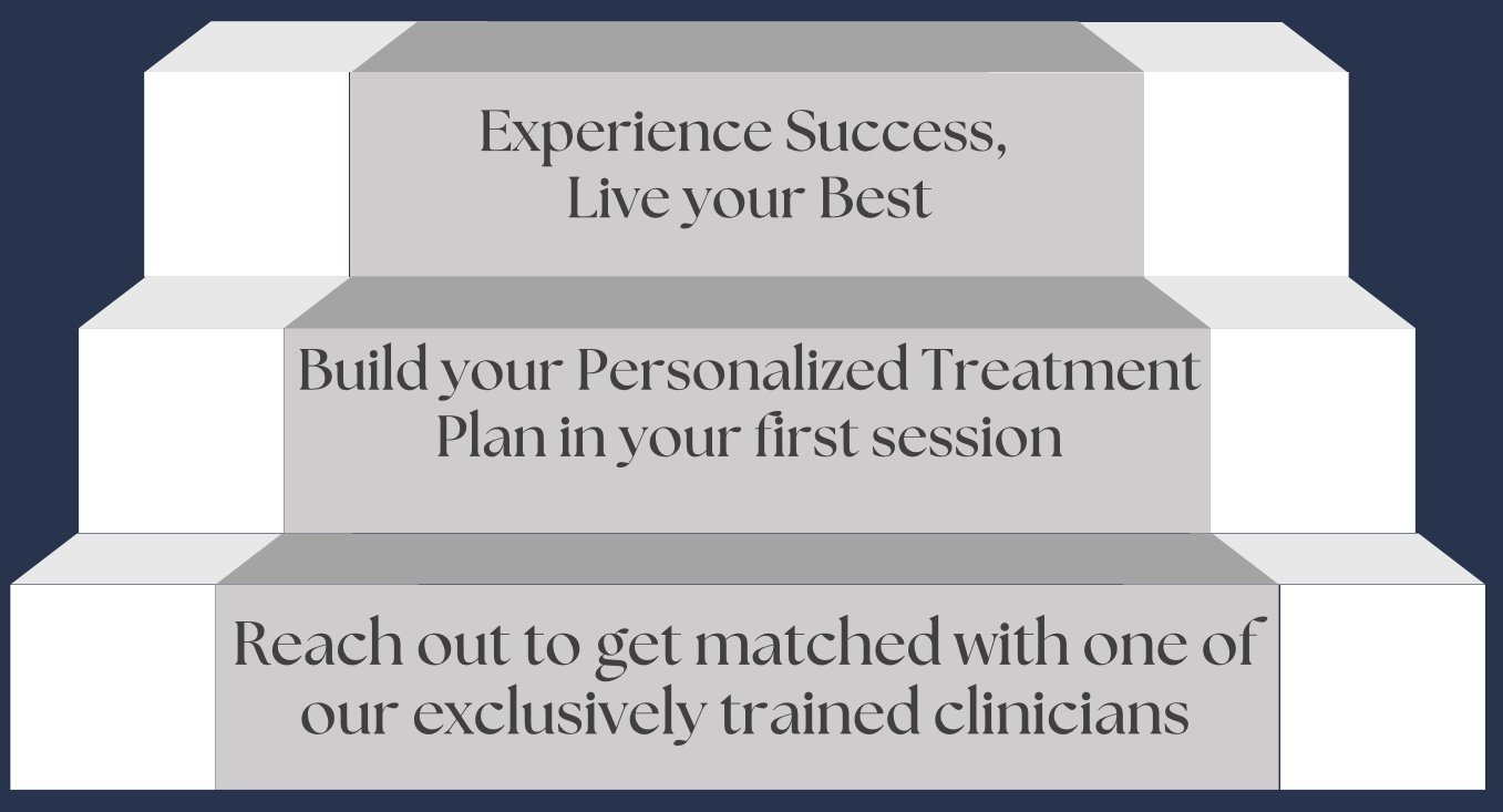 No more pointless therapy sessions. After your first appointment you will receive a personalized plan that is your roadmap to success. Our Treatment Plans will break down the steps you will be taking and the treatment that will be used to get you to your goals as quickly as possible.
